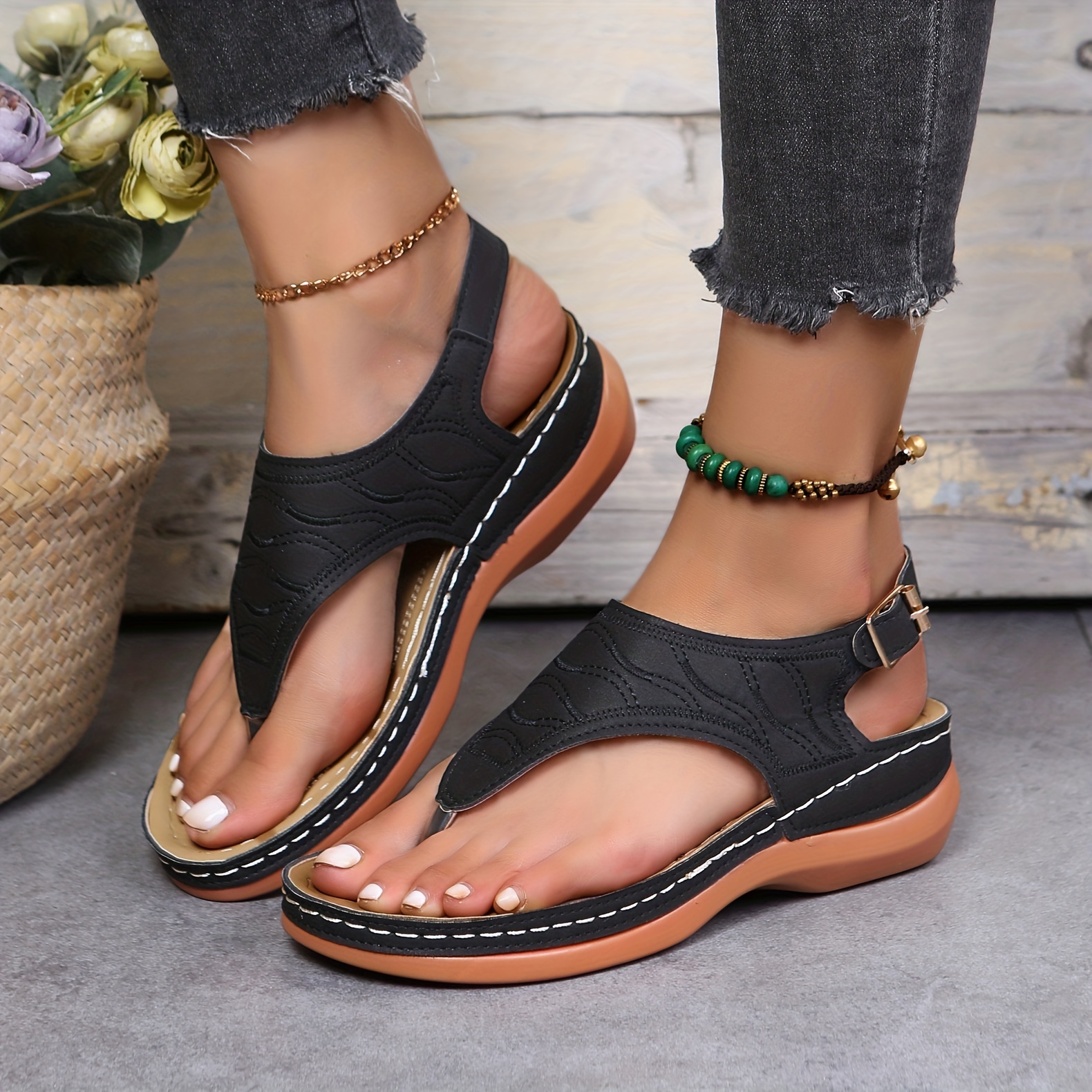 Simply, slip them on and snug your feet in place around the toe clasp for enhanced support.